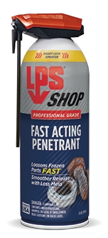 LEARN MORELPS® Shop Fast Acting Penetrant is the heavy-duty formula with special additives to enhance penetration and attach corrosion. The aggressive formula seeps into small crevices and threads to free frozen or seized parts for a faster release, saving time. It also displaces moisture, drying out fasteners and allowing for a smoother release with less mess.