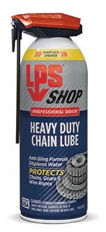 LEARN MORELPS® Shop Heavy Duty Chain Lube is the heavy-duty formula with special additives that deliver less wear, while providing lubrication and protection for gears, chains, and wire ropes in extreme temperature and high load applications. Containing water displacing solvents, the anti-sling formula quickly penetrates to protect from friction and corrosion with less mess.