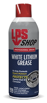LEARN MORELPS® Shop White Lithium Grease is an ultra-white, lithium-based aerosol grease for superior lubrication. It produces a long-lasting, uniform film that doesn’t drip or run and protects against rust and corrosion.